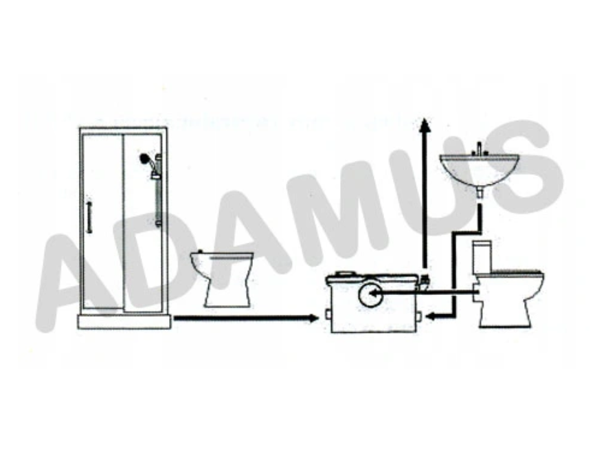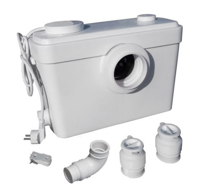 Pompa Toaletowa SANIBO 5 EINBACH - Przepompownia toaletowa służąca do przetłaczania ścieków wszędzie tam gdzie toaleta znajduje się w dużej odległości od pionu kanalizacyjnego lub znajduje się poniżej poziomu tzw. cofki. Przepompownia uniwersalna, może być stosowana w toalecie jak i po zaślepieniu wejścia na sedes w pralni lub kuchni. Dwa wejścia na dowolne urządzenia typu umywalka, pralka, prysznic, wanna + wejście WC