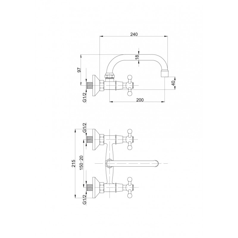 korpus metal chrom,rozstaw przyłączeń 150 mm - (mozliwość regulacji za pomocą mimośrodów w zakresie 140-160mm)mimośrody w komplecierozety ozdobne w kompleciegłowice ceramiczne wylewka typ "s" Ø18mm 3/4"długość wylewki 180 - 200 mmpokrętła metalowe tylp RETROGwarancja: 2 lata