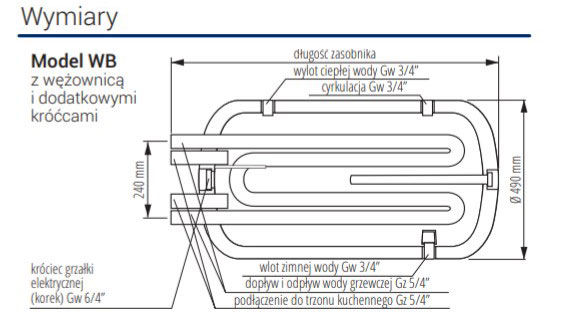 Poziomy wymiennik model WB - z dodatkowymi króćcami