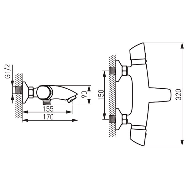- przyłącze mimośrodowe G1/2 rozstaw 150 ± 20 mm