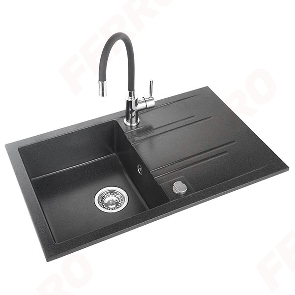Zlewozmywak granitowy czarny z baterią