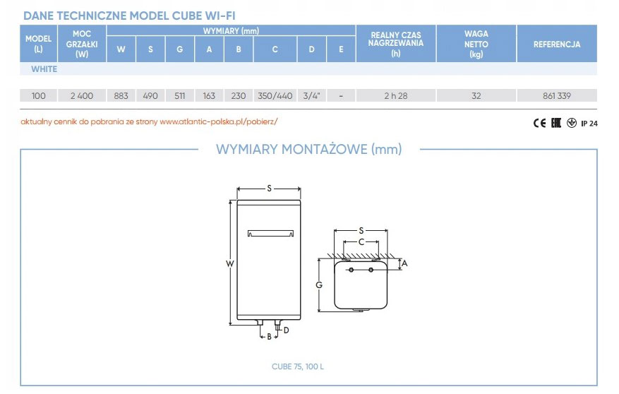• Ogrzewacz wody bojler Atlantic CUBE-2 100L WiFi