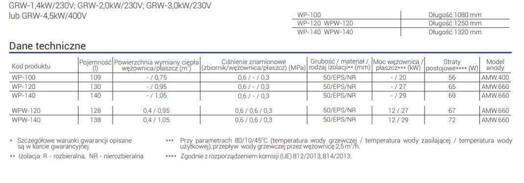 Falowanie ścianek zwiększa powierzchnię grzewczą. Możliwy montaż wymienników w układach zamkniętych (przy nominalnym ciśnieniu w płaszczu 0,3 MPa).