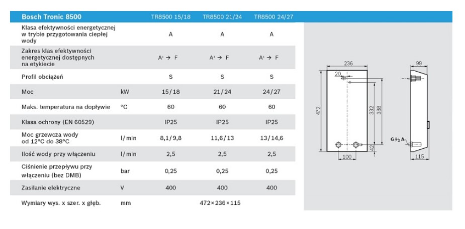 Przepływowy ogrzewacz wody BOSCH - model Bosch Tronic 8500 sterowany elektronicznie.