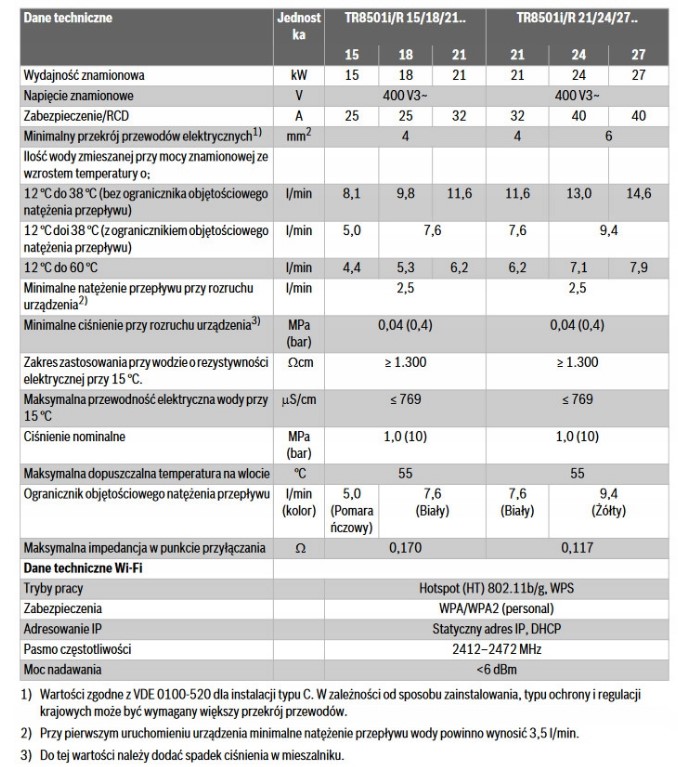 Moc urządzenia : 21 / 24 / 27 kW Napięcie 400 V