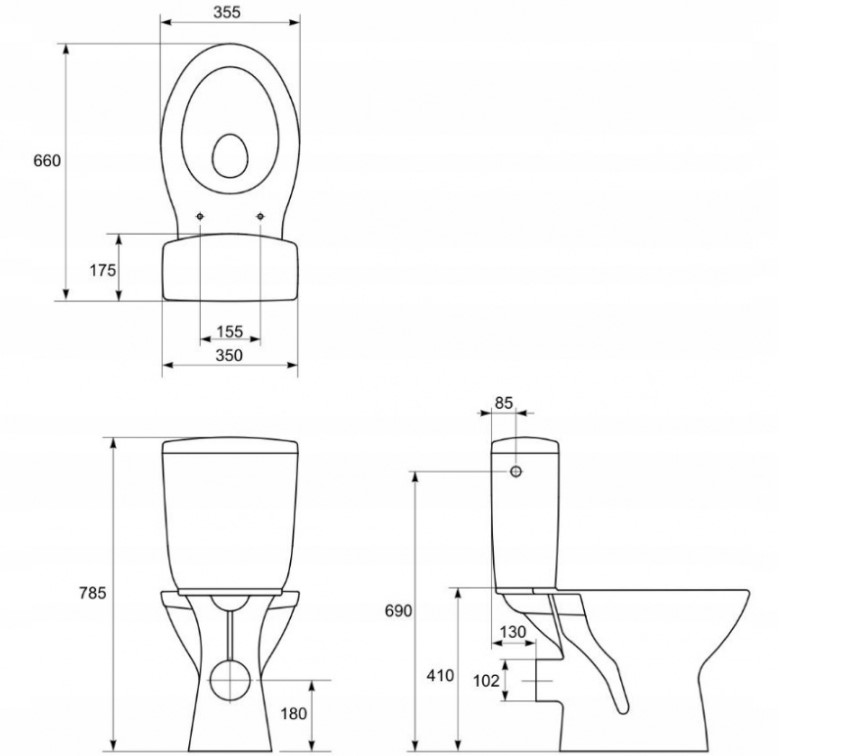 Toaleta WC kompaktowa 35,5x62,5x75,5 cm z deską polipropylenową, biała K100-210