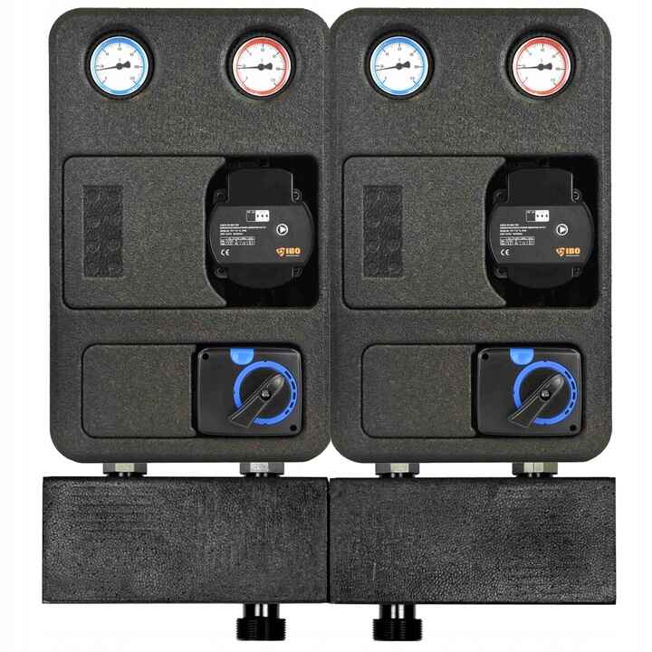 Zestaw składający się z dwóch grup pompowych IBO GP PRO 3D-S oraz rozdzielacza to idealne rozwiązanie do precyzyjnego zarządzania temperaturą czynnika w instalacjach grzewczych. Dzięki wbudowanym zaworom trójdrogowym z siłownikiem, zapewnia pełną kontrolę nad temperaturą w każdym obiegu, zwiększając komfort użytkowania i efektywność energetyczną.
