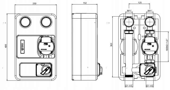 ✔ Dwie pary przyłączy zasilających i powrotnych