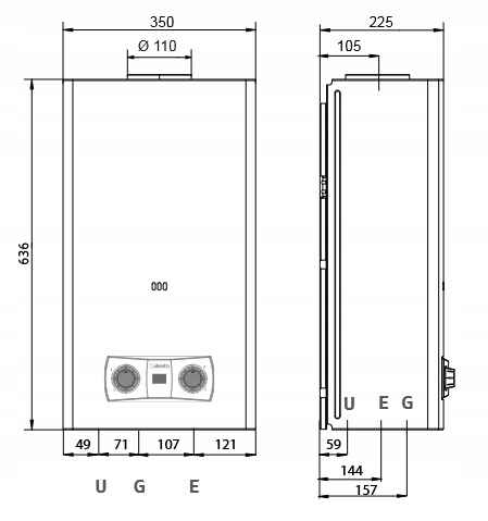FONTE LX P jest wyposażony w niezwykle łatwy w obsłudze interfejs. Pokrętła, jedno po lewej stronie do regulacji przepływu gazu i jedno po prawej do sterowania przepływem wody, pozwalają szybko i intuicyjnie zarządzać temperaturą wody użytkowej. Oddzielne sterowanie płomieniem i przepływem wody ułatwia regulację temperatury, pozwalając użytkownikowi wybrać tę, która najlepiej odpowiada jego preferencjom. Pośrodku znajduje się niewielki wyświetlacz pokazujący temperaturę ciepłej wody w czasie rzeczywistym i sygnalizujący wszelkie błędy.