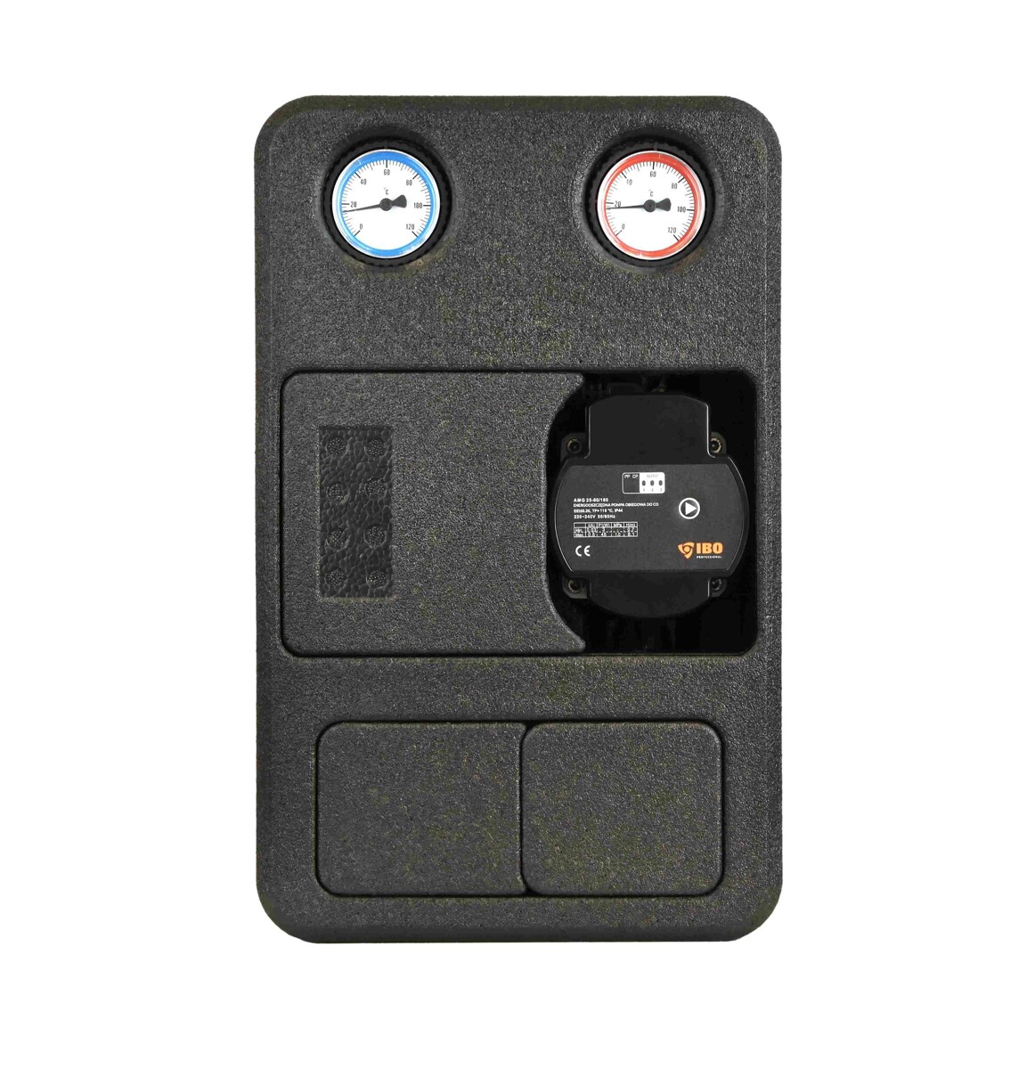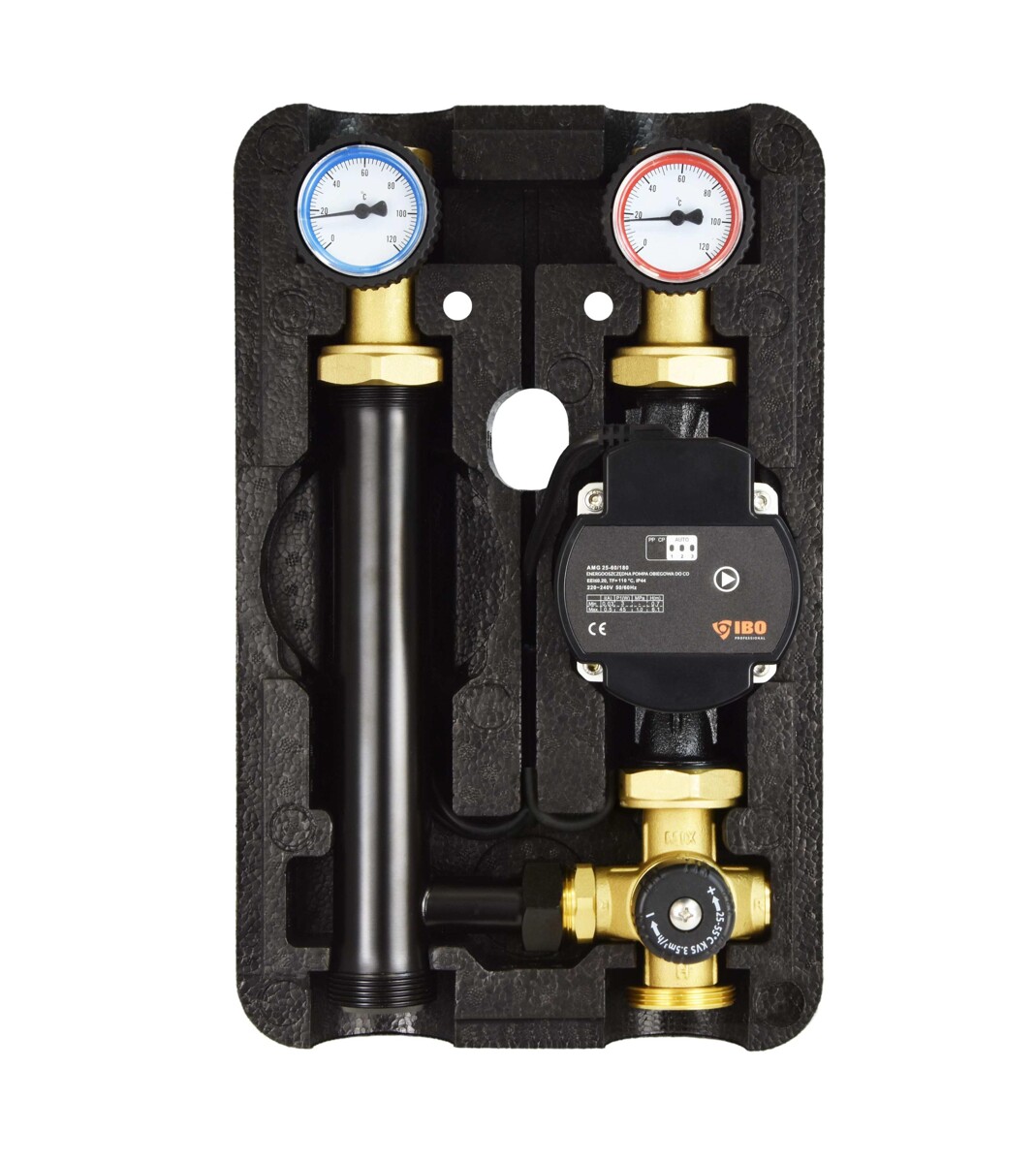 Grupy te wyposażone są w izolację termiczną, która zapobiega wychładzaniu systemu, oraz kompaktowe przyłącza, ułatwiające pracę instalatora. Rozstaw odpowiadający grupom IBO GP PRO wynosi 25-xx/180.