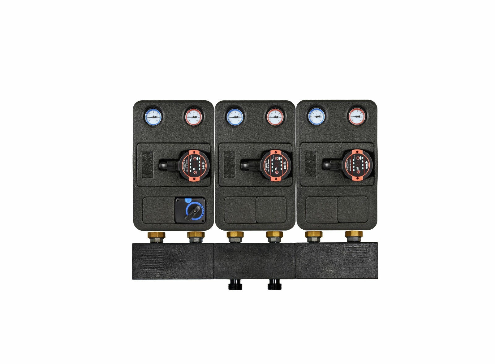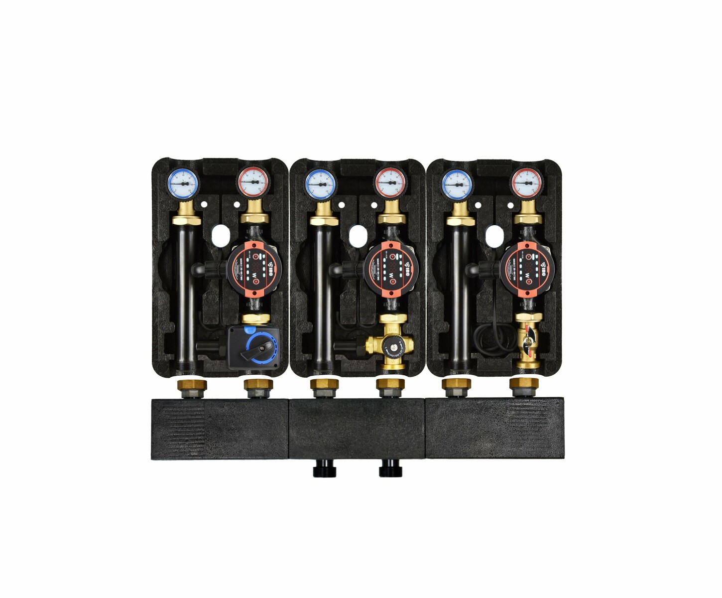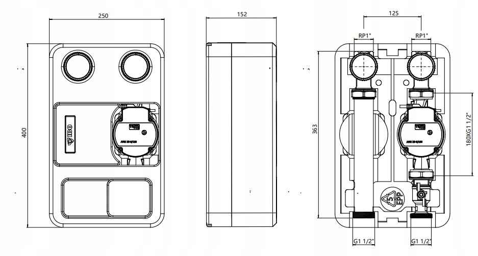 Grupy te wyposażone są w izolację termiczną, która zapobiega wychładzaniu systemu, oraz kompaktowe przyłącza, ułatwiające pracę instalatora. Rozstaw odpowiadający grupom IBO GP PRO wynosi 25-xx/180.