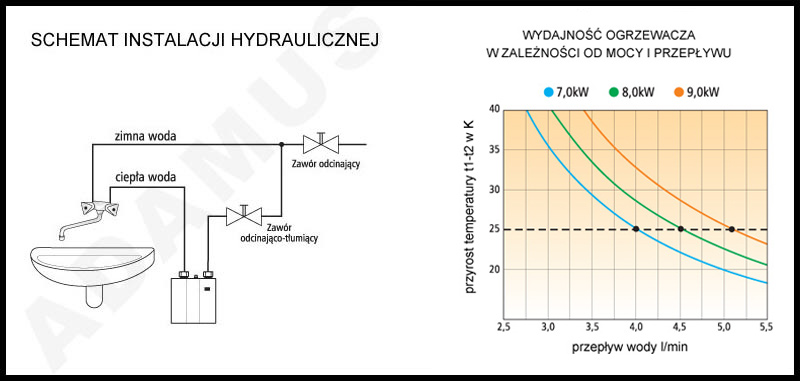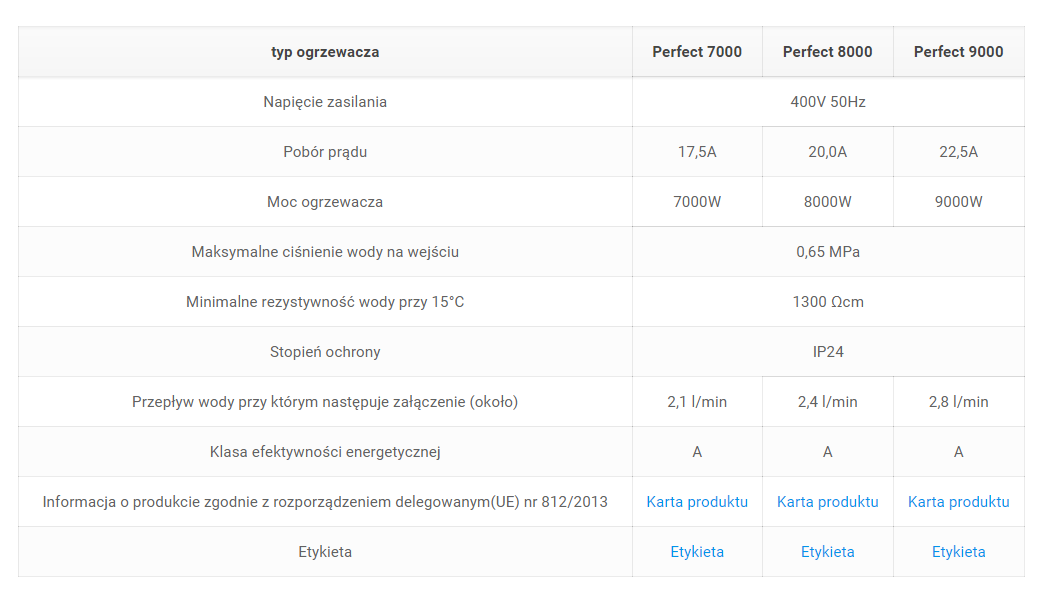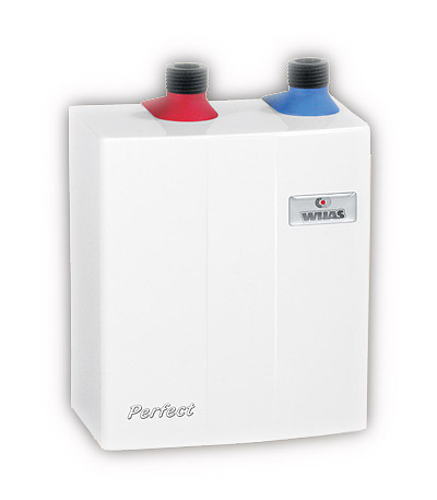 Ciśnieniowy przepływowy ogrzewacz wody Perfect 7000 (380-400 V) - 7 kWCharakterystyka Jest to seria ogrzewaczy, w których element grzewczy może być poddawany wysokim ciśnieniom przez cały czas eksploatacji urządzenia (do 6,5 atm). Umożliwia to zamontowanie zaworu odcinającego nie tylko przed ogrzewaczem, ale też za nim. Pozwala to na łatwe ukrycie ogrzewacza wody. Montaż urządzenia odbywa się przy pomocy wiotkich wężyków z gumowymi uszczelkami. Ogrzewacze te przeznaczone są do zaopatrywania w ciepłą wodę umywalek, zlewozmywaków i natrysków prysznicowych.