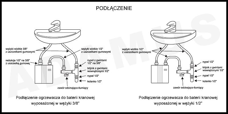 Uwaga !!Ogrzewacz ten może być instalowany tylko w pozycji przedstawionej na zdjęciu. Zamontowanie urządzenia w innym położeniu spowoduje jego uszkodzenie.