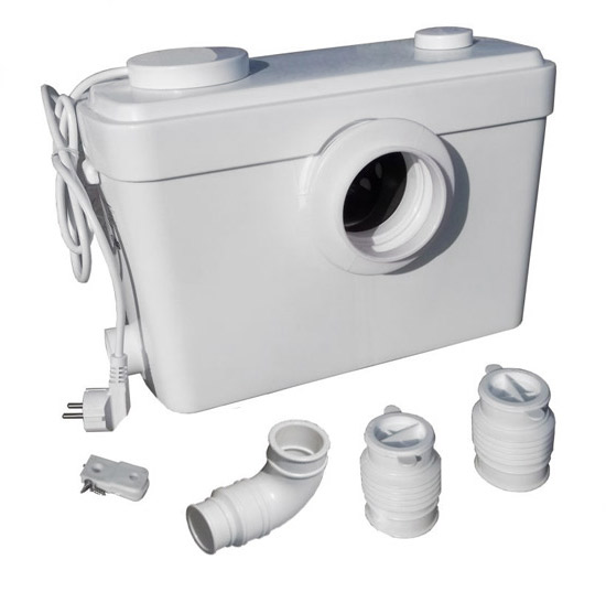 Pompa Toaletowa SANIBO 5 - Przepompownia toaletowa służąca do przetłaczania ścieków wszędzie tam gdzie toaleta znajduje się w dużej odległości od pionu kanalizacyjnego lub znajduje się poniżej poziomu tzw. cofki. Przepompownia uniwersalna, może być stosowana w toalecie jak i po zaślepieniu wejścia na sedes w pralni lub kuchni. Dwa wejścia na dowolne urządzenia typu umywalka, pralka, prysznic, wanna + wejście WC