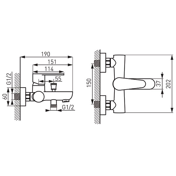- przyłącze mimośrodowe G1/2 rozstaw 150 ± 20 mm
