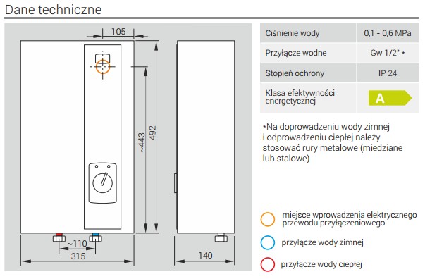 Niezawodna technologia wykonania grzałek gwarantuje najwyższą trwałość, odporność na pęcherze powietrza i zanieczyszczenia zawarte w wodzie.
